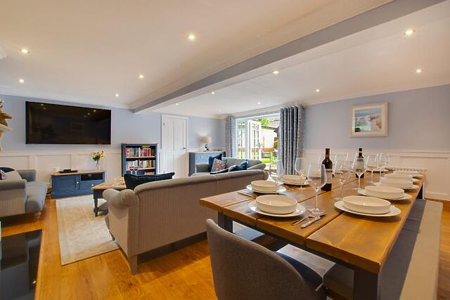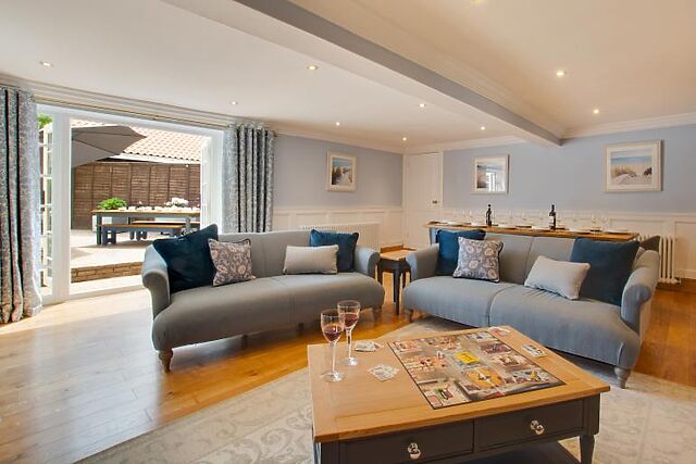 Welcome to Old Cottage in Bacton, Norfolk, a luxurious and spacious retreat perfect for large groups. This elegant property sleeps 11 guests across six beautifully appointed bedrooms, offering a mix of double, king-size, and bunk beds.