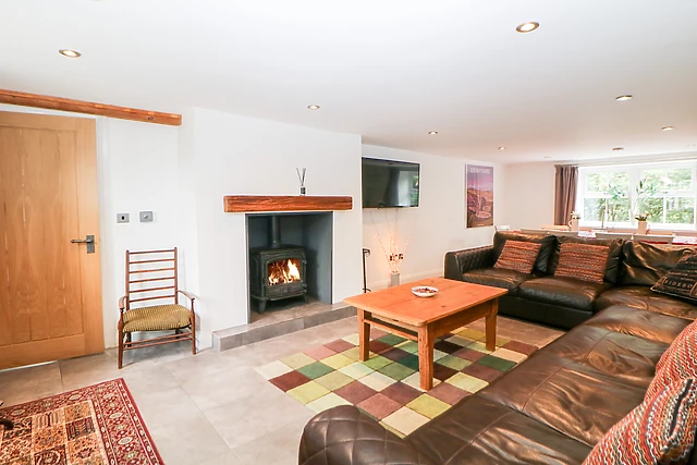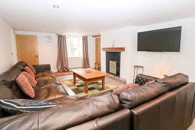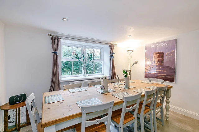 This countryside cottage is positioned perfectly for a relaxing retreat as a large group, exploring the wonders of both Derbyshire and the Peak District National Park. Walk over the cobbled courtyard and enter into the porch, where you will find multiple social spots surrounding you; gather the whole group in the open-plan living space, lighting up the woodburning stove to offer a homely feel to the room.