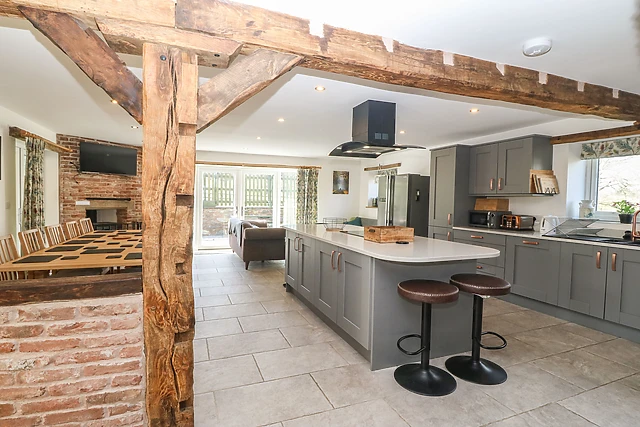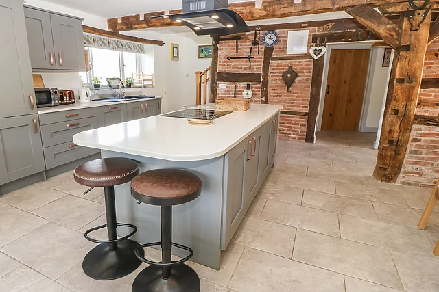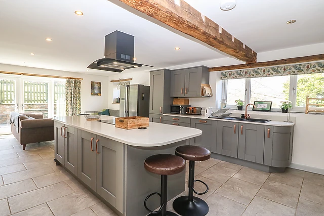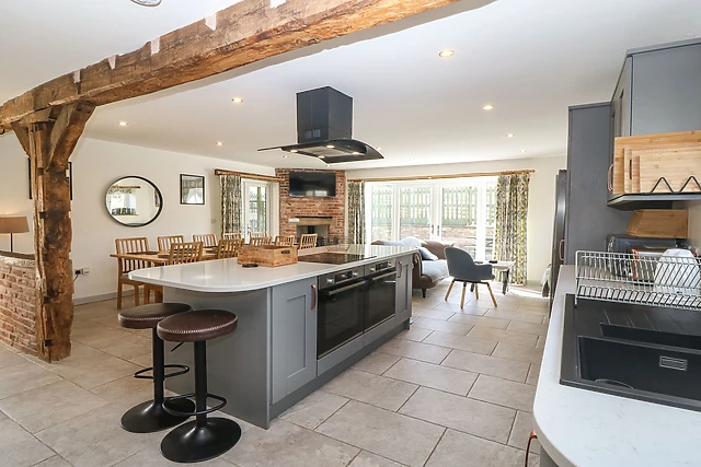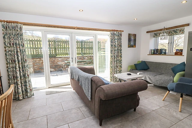 Upstairs, two more king-size rooms, also with zip/link options, offer elevated views of the surrounding beauty. The cottage's open-plan living space, with its contemporary kitchen and plush seating by a woodburning stove, invites you to unwind in style.
