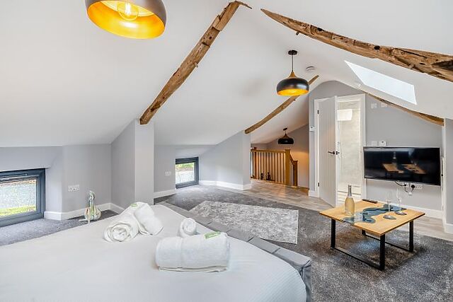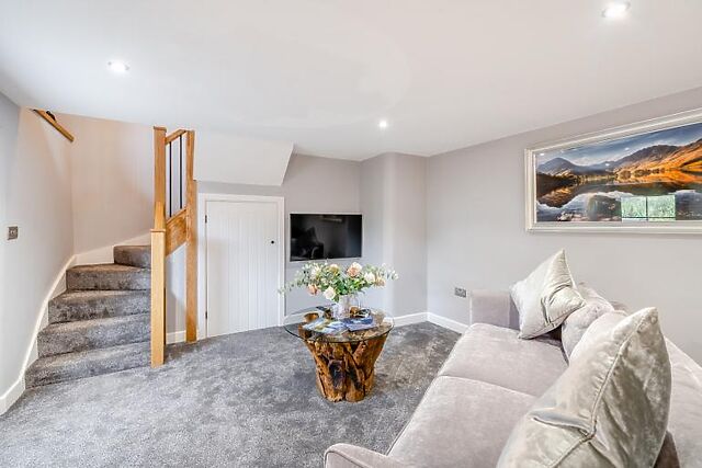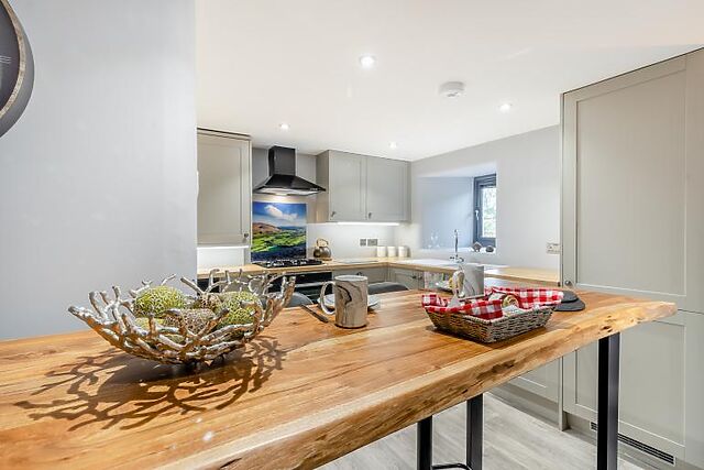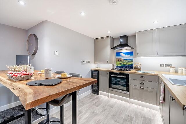 The cottage has been renovated to a high standard, combining modern comforts with traditional elements like old beams and slate features. The ground floor boasts a stylish kitchen with a breakfast bar overlooking the cosy lounge, where you can relax with a movie on the Smart TV or enjoy a glass of wine on the comfy sofa.
