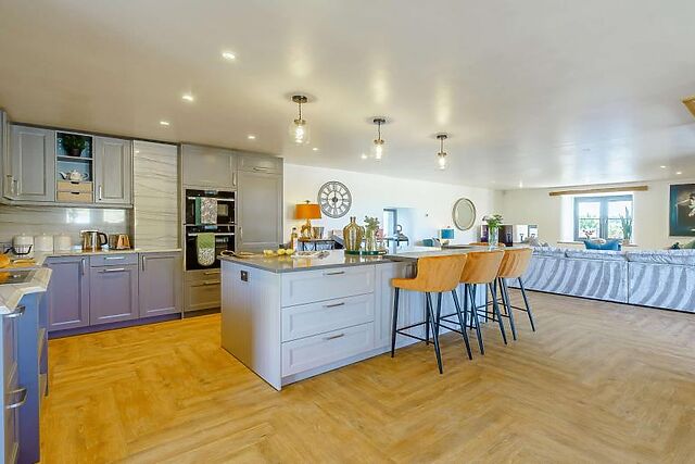 Indulge in the comfort of this stunning accommodation, where traditional beams and exposed stone walls blend seamlessly with modern amenities. The heart of the home is a spacious lounge/kitchen/diner, complete with a handcrafted kitchen, perfect for culinary enthusiasts, and a cosy lounge area with a Smart TV for relaxing evenings.