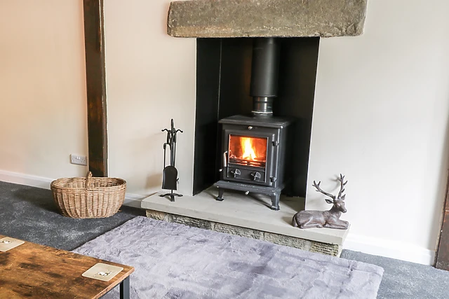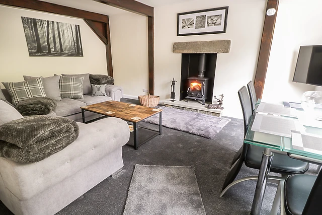 The cottage exudes a contemporary style, complemented by traditional touches like the woodburning stove in the inviting living/dining room. The modern kitchen, complete with a breakfast bar, sets the scene for intimate moments over home-cooked meals.