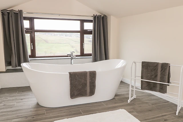 Escape to the serene countryside with a stay at Little Barn, a stone-built haven nestled in the picturesque village of Cross Roads near Haworth. This charming retreat, perfect for up to four guests, boasts two tastefully decorated bedrooms, including a king-size with a luxurious freestanding bath, and a cosy ground-floor double.