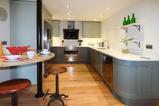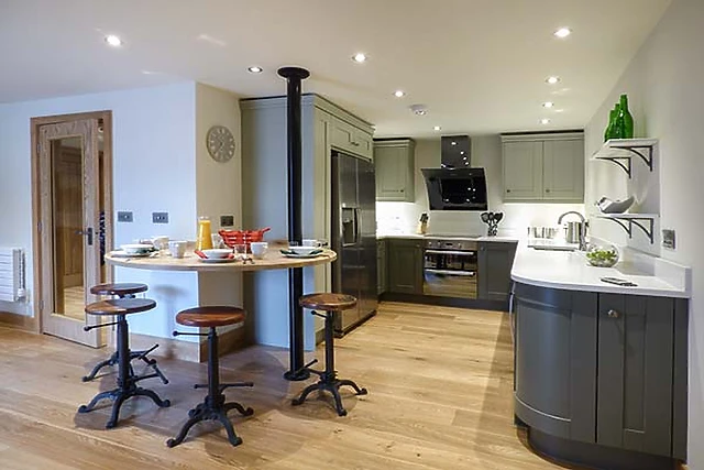 On entering the front door, step through the hallway into the large open plan living area with stylish quality bespoke kitchen with granite surfaces, American fridge and wine chiller. Sit at the breakfast bar with its central column and themed stools or at the dining table.