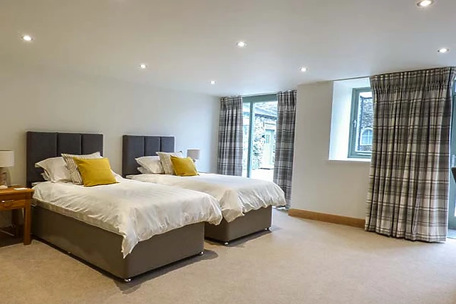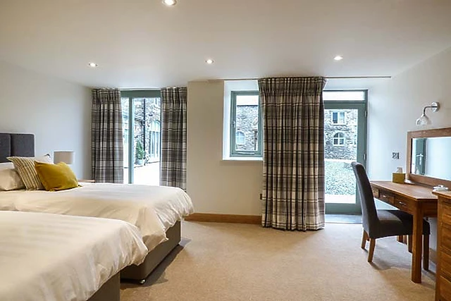 Downstairs are two en-suite bedrooms, one with a patio door to the courtyard where you can step out and enjoy the long range views to the Lakeland fells as these are both at ground level at this side of the cottage. The ground floor has underfloor heating.