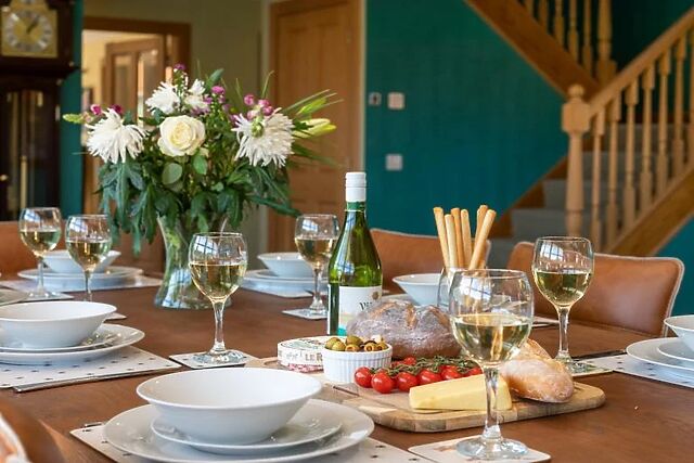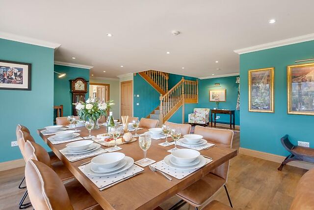 Inside, you'll find two sumptuous lounges with wood burners and Smart TVs, alongside two fully equipped kitchens. A grand entrance hall with a large dining table sets the scene for memorable meals with loved ones.