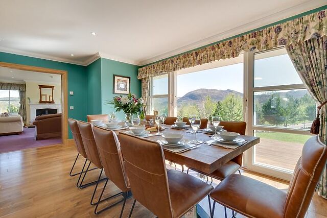 Indulge in the grandeur of Macfarlane House, a luxurious Highland retreat perfect for large family gatherings. Nestled in an elevated position, this exceptional manor offers stunning views of the surrounding mountains and is a stone's throw away from the enigmatic Loch Ness.
