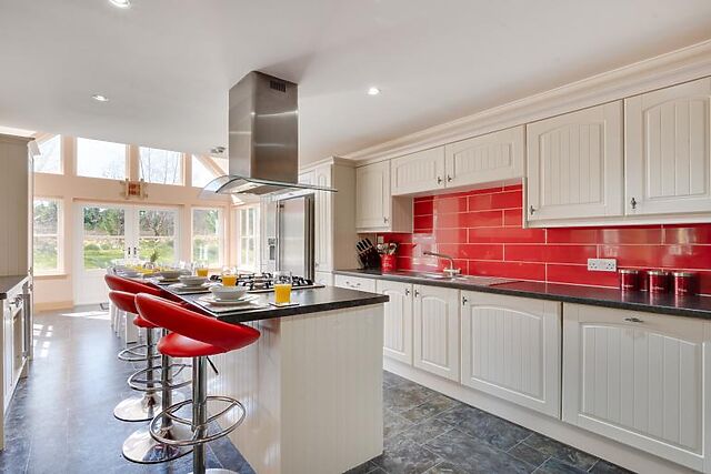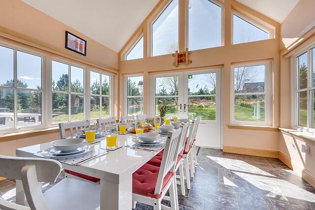 Accommodating up to 16 guests in 8 elegantly appointed bedrooms, this property boasts 7 bathrooms, ensuring privacy and comfort for all. The house features two hot tubs and a barrel sauna, providing the ultimate relaxation experience amidst the breathtaking countryside.