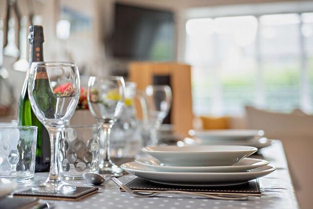 Relax in the spacious lounge/dining area, complete with a Smart TV and bay windows overlooking the garden. The fully equipped kitchen includes an electric double oven, hob, microwave, fridge/freezer, dishwasher, tumble dryer, and coffee machine. Enjoy meals in either the lounge/diner or the kitchen/diner.