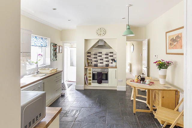 The inside has been designed to provide extremely comfortable, well-furnished accommodation throughout and will comfortably sleep a large family or a group of friends in five bedrooms, one of which has an en-suite shower room. The well-equipped, fitted kitchen forms the hub of the home, offering a breakfast table for occasional dining, and has access to the south-facing, enclosed rear garden.