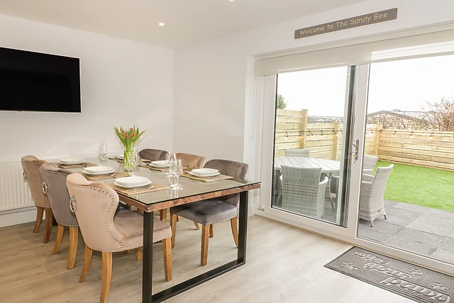 Escape to the luxurious comfort of The Sandy Bee, a contemporary three-storey cottage nestled in the heart of Benllech on the Isle of Anglesey. This stunning property is an idyllic retreat for families or groups of up to six guests, offering a seamless blend of modern amenities and serene coastal charm.
