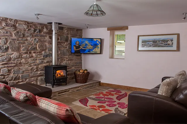 The barn features four cosy bedrooms, including a convenient ground-floor double with an en-suite wet room, ensuring comfort for all guests.