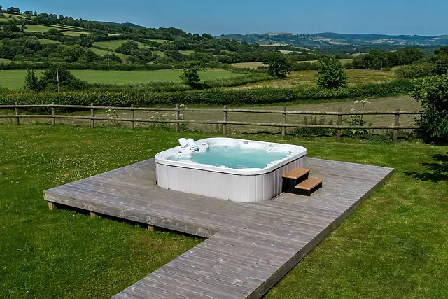 Indulge in the ultimate relaxation with the private hot tub, where you can soak in the breathtaking views of the rolling countryside.