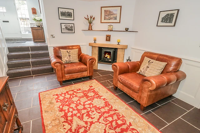 Just a couple of steps down from the hallway entrance takes you to the main ground-floor of the property, walk through the charming snug area with a woodburning stove, (ideal for an evening of relaxation in the winter months!) to be greeted by the kitchen/diner, a spacious area where you can prepare all your family-favourite meals, with plenty of room for little helpers to get involved too. Boasting a breakfast bar to enjoy your morning coffee, patio doors opening up to your own private patio for a breath of fresh air in the summer months, and a dining table to fit all guests, this room is definitely the heart of the house.