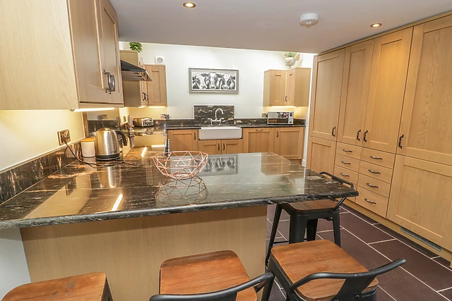 The ground-floor is also home to the sitting room, the perfect place to gather and watch a classic film together and plan your adventure for the days ahead. With the ground-floor also holding a super-king-size room, up the stairs you can find the further two bedrooms, with a super-king-size with an en-suite bathroom and a double room serviced by a highly-maintained shower room, this cottage provides a delightful resting spot for all types of group.