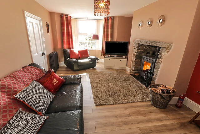 Follow the vintage tiled floor of the hallway into the sitting room, here you can find a woodburning stove, Smart TV and sofa arrangement, all you need for a quiet night in. For endless fun head outside and find the external games room, a brilliant space filled with air hockey, Wii, table football and darts Next to this is an external utility room with two shower rooms, so you can come straight from the beach and wash off the sand.