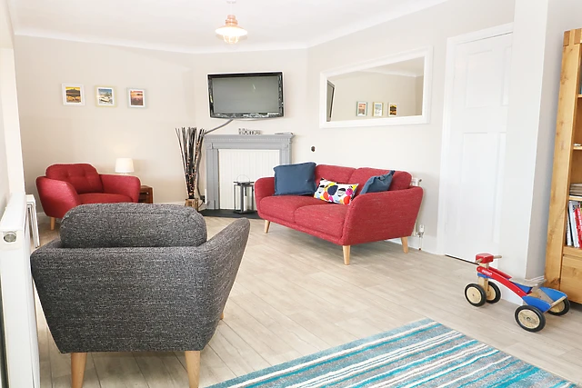 A stylish, semi-detached beach house in a superb location, overlooking Cardigan Bay in the seaside town of Criccieth on the Llyn Peninsula. Just two minutes’ walk from the beach and promenade, this family cottage combines a contemporary beach house style with thoughtful personal touches, making it perfect for guests of all ages.