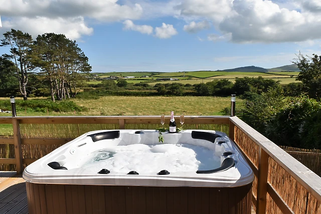 This cottage also comes with a stylish shower room and two cosy bedrooms that have plenty of storage and delightful bed linen. Outside is a fantastic, extensive decked area with ample furniture and a luxury 6-man hot tub along with some incredible views of the hills and fields nearby.