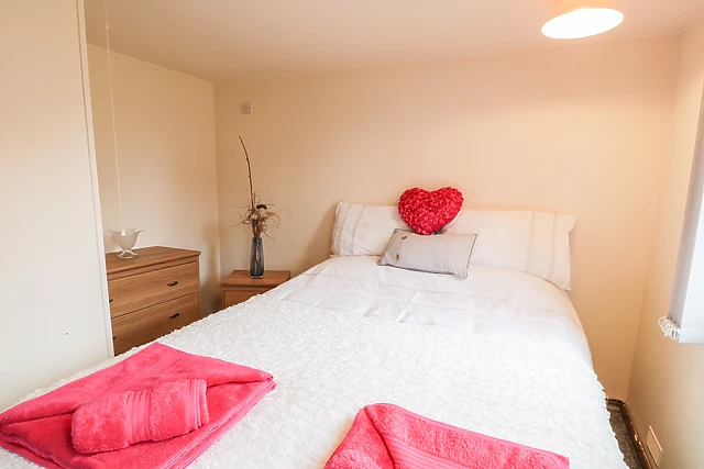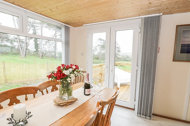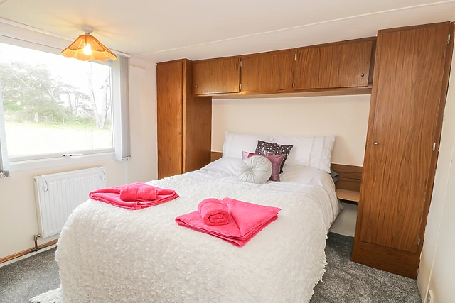 The living room and dining area is refreshing and airy with comfortable seating and a TV with DVD, the room is complete with some fantastic views of the surrounding countryside. Despite being a ground floor lodge, the kitchen in Y Caban Clyd is spacious and very well-equipped with modern fixtures and fittings.
