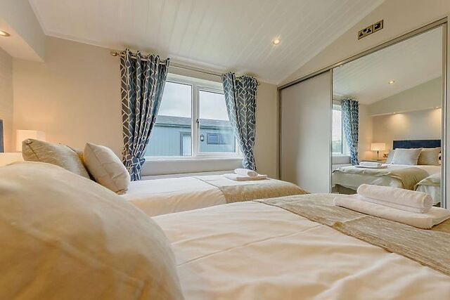 Accommodating up to 4 guests, the lodge features two plush bedrooms, including a king-size and a super-king-size zip-and-link that can be transformed into twin beds upon request. Each room is a haven of tranquillity, ensuring a restful night's sleep.