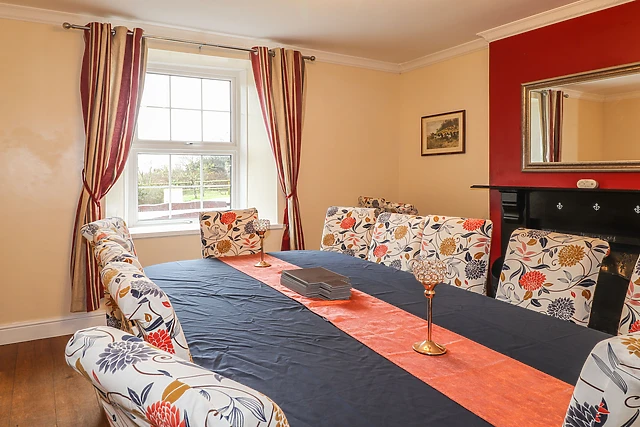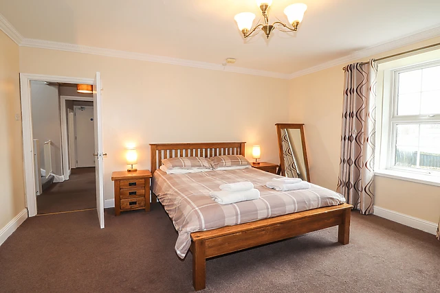 The accommodation comfortably sleeps up to 14 guests across seven tastefully decorated bedrooms, suitable for large groups or family gatherings.
