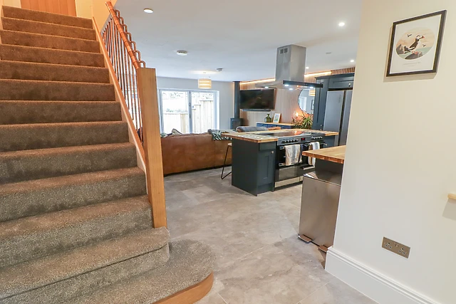 After dinner, retire to the sitting area, where you can snuggle up in front of the TV and enjoy the warmth and crackling ambience of the woodburning stove. Step outside to the rear garden, where you can enjoy the tranquillity of the countryside.