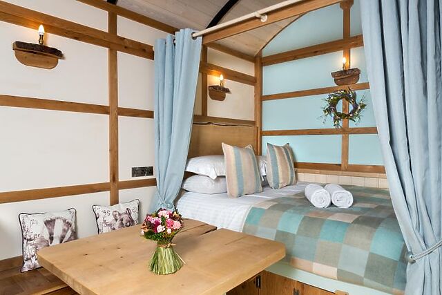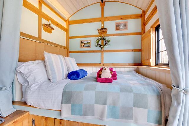 Welcome to The Mallard, a unique shepherd's hut-style cabin located in the heart of the Brecon Beacons National Park. This cosy retreat sleeps two and is perfect for a romantic getaway.