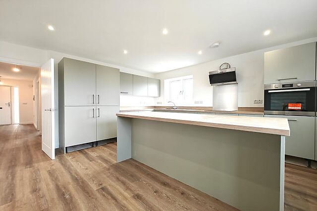 Inside this immaculate holiday home, discover a bright and airy lounge, with white walls, pale wooden floors, and sumptuous sofas, ideal for settling down to watch the Smart TV. Leading off is the streamlined, open-plan kitchen.
