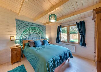 Crafter's Retreat in Upwell, Norfolk, offers a cosy escape for two in a charming log cabin. This delightful accommodation features a spacious bedroom with a king-size bed, a modern bathroom, and an open-plan living and dining area.