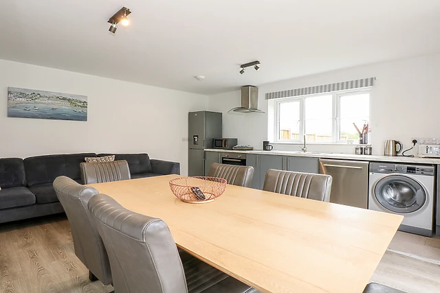 The heart of this home is the open-plan living space, where you can cook, dine, and relax in a modern setting bathed in natural light. The property is thoughtfully equipped with a highchair, washing machine, dishwasher, and broadband/WiFi, ensuring a comfortable and connected stay.