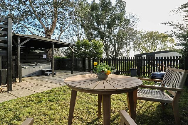A shower room with a walk?in shower, basin, and WC completes the interior. Outside, the enclosed garden offers room for outdoor dining, while the covered and private hot tub provides a sheltered spot to unwind at any time of day.