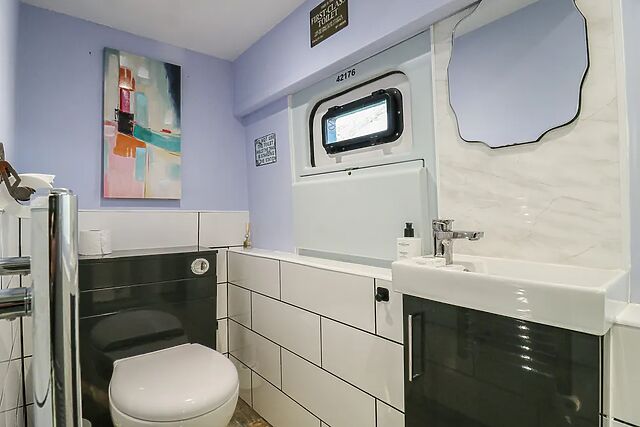 A plush king-sized bed sits within this space, offering a place to recharge. Completing the interior is a sleek, contemporary shower room.