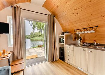 Set on a beautiful private site with three placid fishing lakes, this delightful hideaway enjoys a quiet waterside location. Offering fresh and cosy accommodation for up to four guests, the pod is ideally situated for discovering the region’s historic sites and gorgeous countryside.