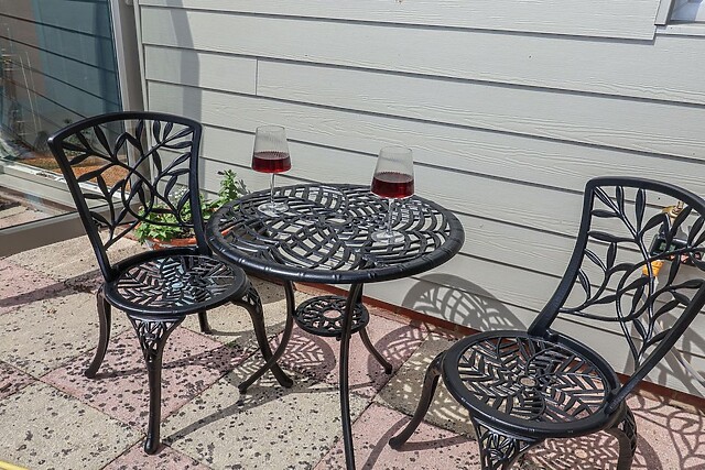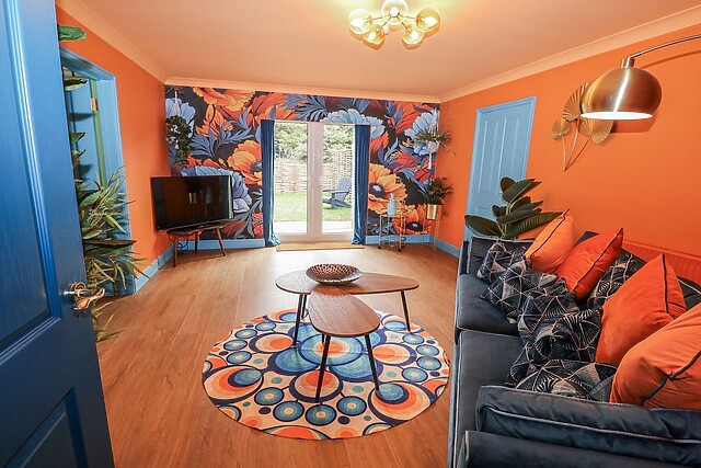 The heart of the home is the kitchen/diner, fully-equipped with everything you need to prepare delightful meals, which can be enjoyed at the dining table. Gather around the sleek breakfast bar, topped with a rustic and stylish wooden countertop and accented with black fixtures, to chat over fresh pastries or plan the day’s adventures while breakfast sizzles on the stove.