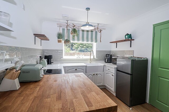A handy utility room houses a washing machine, adding a touch of convenience to your stay. After dinner, retire to the sitting room and let the warmth of the Eco Pellet stove envelop you as you settle down for a relaxing evening in, with a Smart TV.