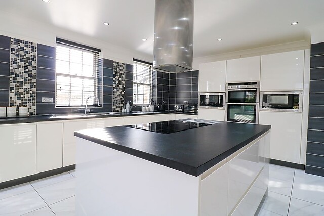 Pull up and park the cars outside this large abode. Upon entering the property, you'll be greeted by a spacious kitchen, fully equipped for all your culinary needs.