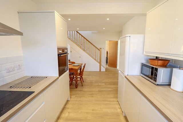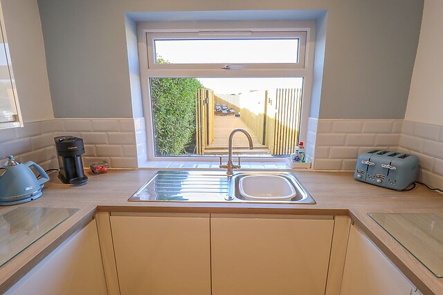 Upon entering the property, you'll be greeted by a spacious kitchen/diner, being fully renovated, everything is new and fully equipped with all you need to prepare delicious meals for your group. Adjacent to this, you'll find a handy utility room housing a washing machine, tumble dryer and dog towels designed to wrap around the wettest and sandiest of pets, perfect for those longer stays.