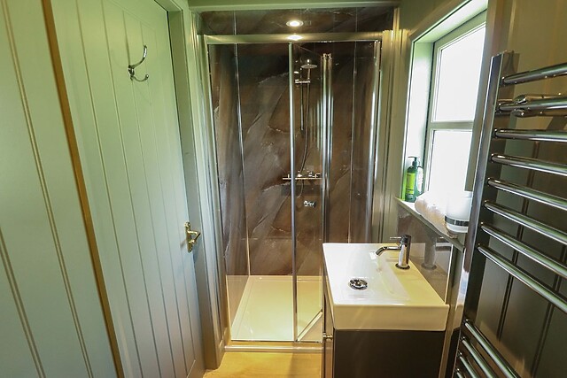 The kitchen boasts an electric oven, induction hob, and a fridge with an icebox, ensuring you have everything you need for your self-catering stay. The property offers a spacious king-size bedroom, providing a serene haven for a rejuvenating night's sleep.