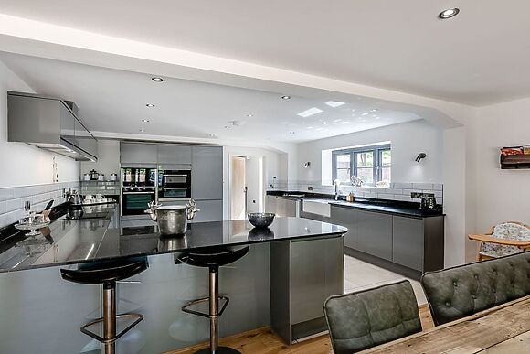 Five bathrooms serve the bedrooms. The huge games and cinema room opens via bi-fold doors onto the terrace and rear garden.