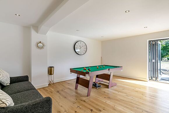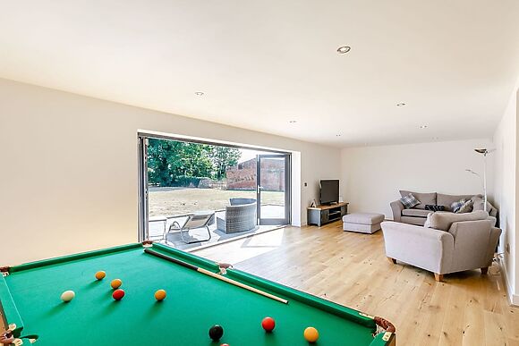 The rear games and cinema room with bi-fold doors to the garden keeps everyone entertained whatever the weather.
