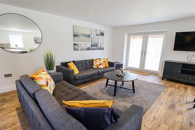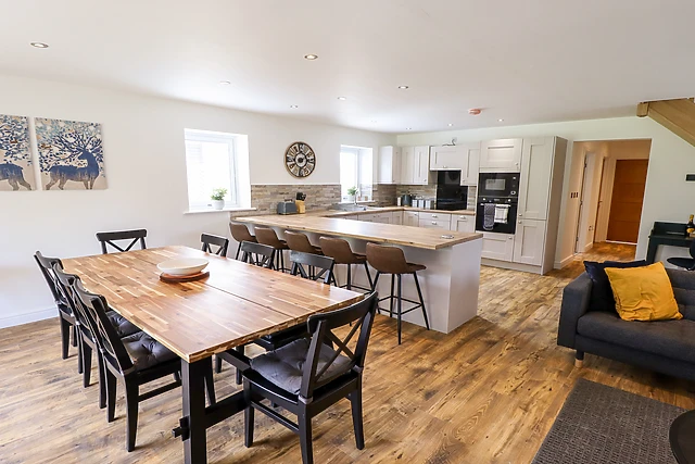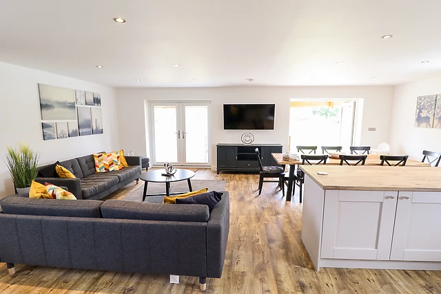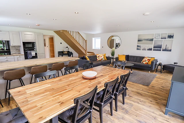 Benefit from two designated parking spaces, before heading indoors to be met by the open-plan living space, featuring a sleek kitchen, a handy breakfast bar, dining seating for eight guests, and a plush seating area where you can unwind, socialise and plan your itinerary. Those who'd prefer an alfresco affair, set the outdoor table and while the night away, as the conversions flow and wine is poured, before indulging in a soak in the hot tub.