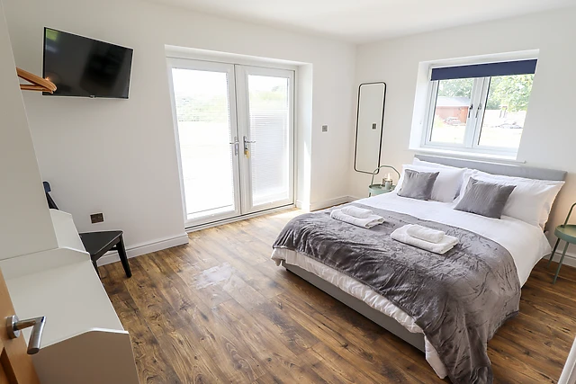 Located upon Thorpe Park in Thorpe-on-the-Hill near South Hykeham is Lodge 24, a stylish, three-bedroom abode. Complete with a contemporary interior whilst enjoying a stunning, lakeside position, Lodge 24 makes a wonderful base for a family of eight, looking to explore the delights of Lincolnshire. Benefit from two designated parking spaces, before heading indoors to be met by the open-plan living space, featuring a sleek kitchen, a handy breakfast bar, dining seating for eight guests, and a plush seating area where you can unwind, socialise and plan your itinerary. Those who'd prefer an alfresco affair, set the outdoor table and while the night away, as the conversions flow and wine is poured, before indulging in a soak in the hot tub.