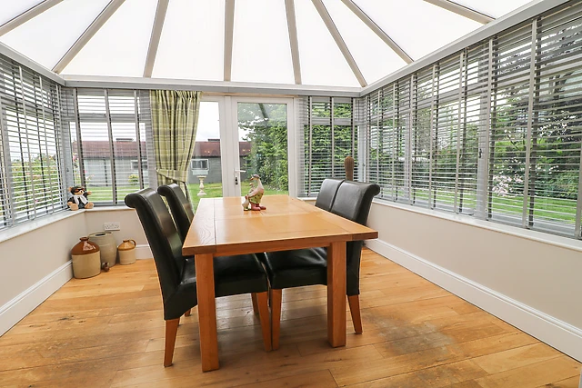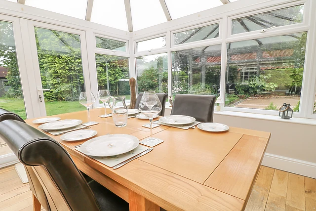 Step inside to discover a cosy sitting room, complete with a warming gas fire, perfect for unwinding after a day of exploration. The cottage's heart lies in the conservatory, which doubles as a charming dining room, offering a space to share meals and create memories.