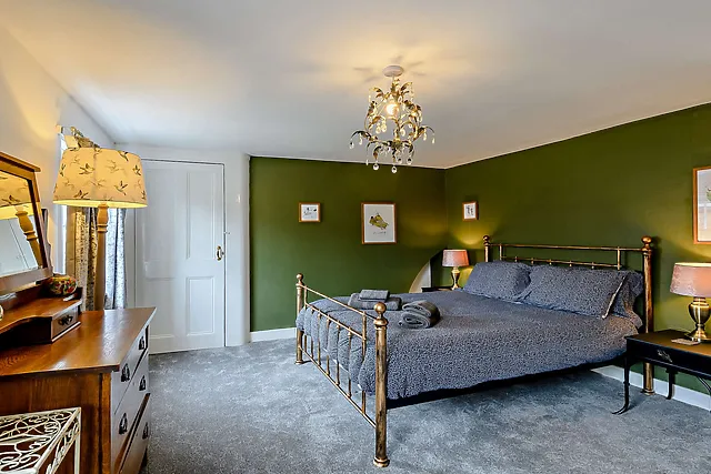 The accommodation features three tastefully decorated bedrooms, including a regal four-poster king-size bed, and a single bathroom.