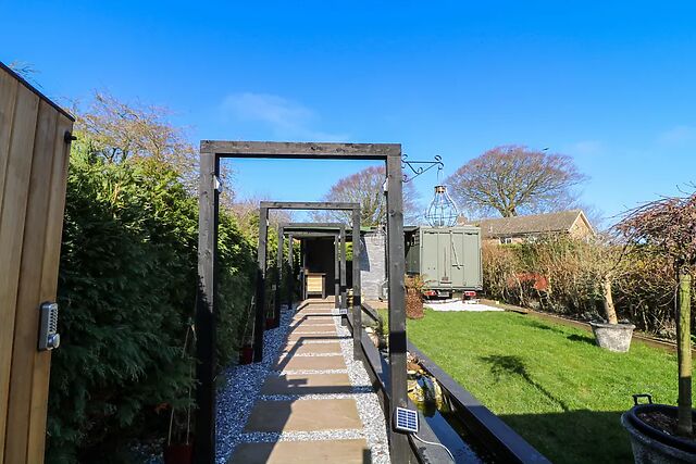 Park up and pass a tranquil water feature as you wander through the garden to this incredible hideaway. Be met by a fabulous green camper van which has traveled the world and been outfitted to a fantastic standard to bring character and charm to your romantic retreat.