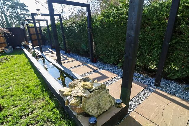 There is an outdoor kitchen with a fridge for guests to use, a lawn to picnic on beside the trickling water feature. The local area offers amenities at Colsterworth, Oakham Castle, Barnside Gardens, and more.