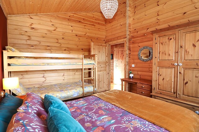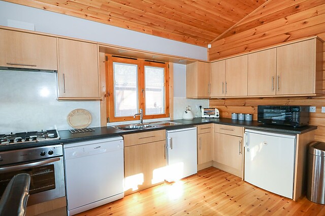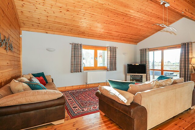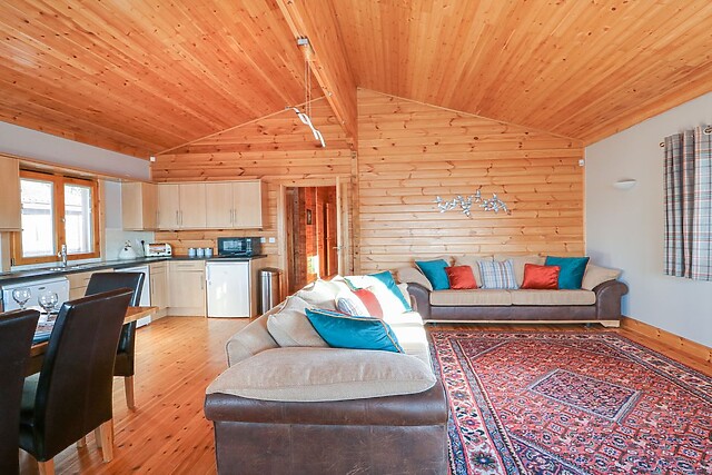 The lodge boasts a modern open-plan living space, complete with all the comforts of home, ensuring a relaxing stay.