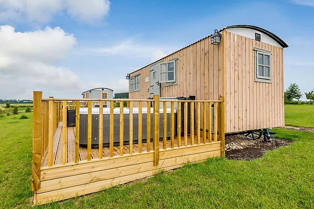 Escape to Rams Retreat, a tranquil haven nestled in the heart of the Lincolnshire countryside. This idyllic shepherd's hut offers a romantic getaway for two, complete with a luxurious private hot tub to soak in while admiring the surrounding fields.
