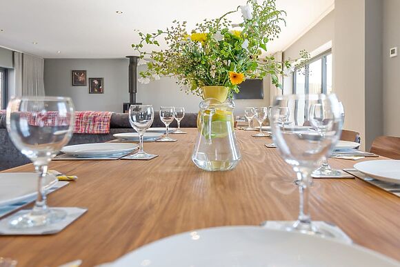 Five en-suites, parking for 7 cars, a hot tub and free fishing make this a seriously well-equipped base.