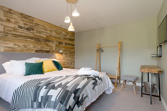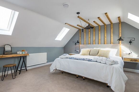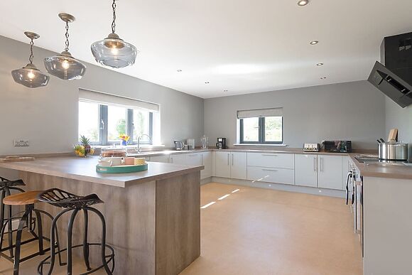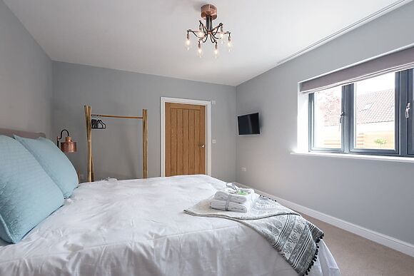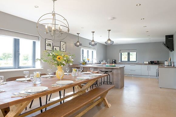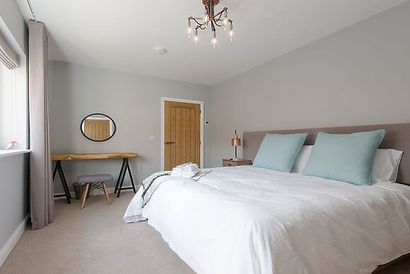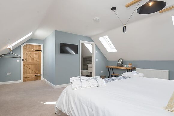 The barn has five bedrooms all with en-suite bathrooms. Ground floor: Bedroom 1 and Bedroom 2 are both kingsize with wet room en-suites. First floor: Bedroom 3 is kingsize with cubicle shower.
